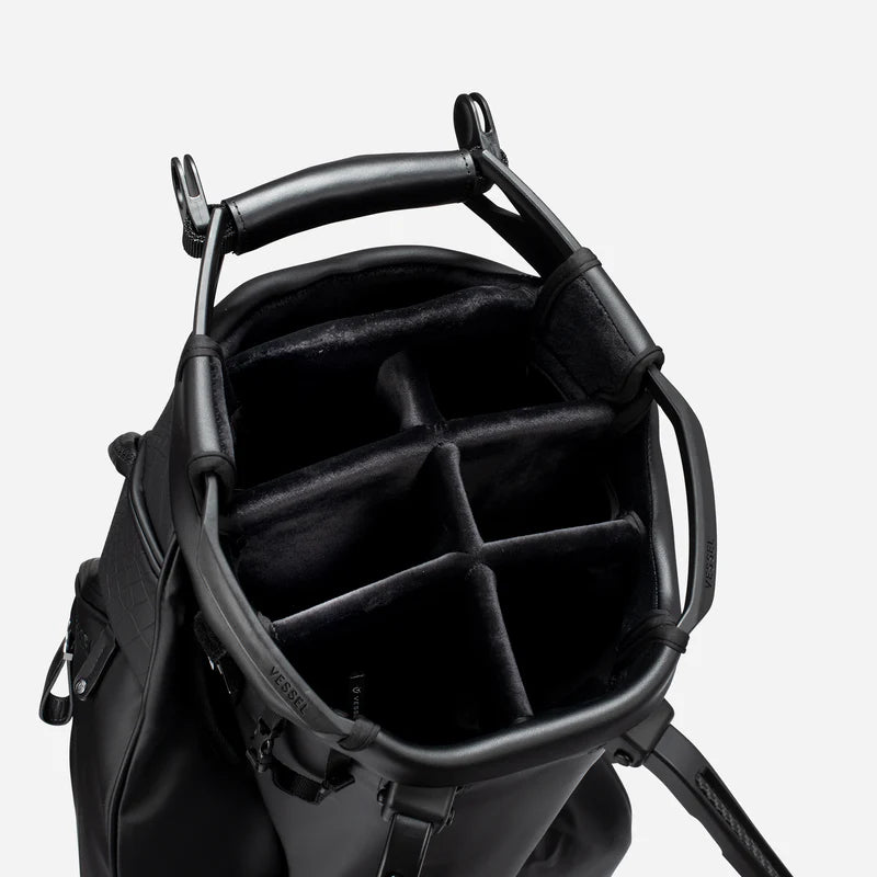 Meticulously crafted for the highest level of functionality and on-course convenience. The newly designed 7-and-14 way tops offer best in class club organization with dedicated putter storage and offset club dividers for optimal club viewing and retrieval. The Player V Pro utilizes VESSEL’s patented technologies (Equilibrium Double Strap and Rotator Base) for maximum balance and superior stability. Intentionally placed high strap-attachment points promote further balance and eliminate club fallout while the bag is being carried. A key feature is the cart strap pass-through for added protection when used on a cart or trolley. With too many fine details to name, you’ll be pleasantly surprised to discover that every detail, every element, of the Player V Pro is thoughtfully crafted for an uncompromised game.